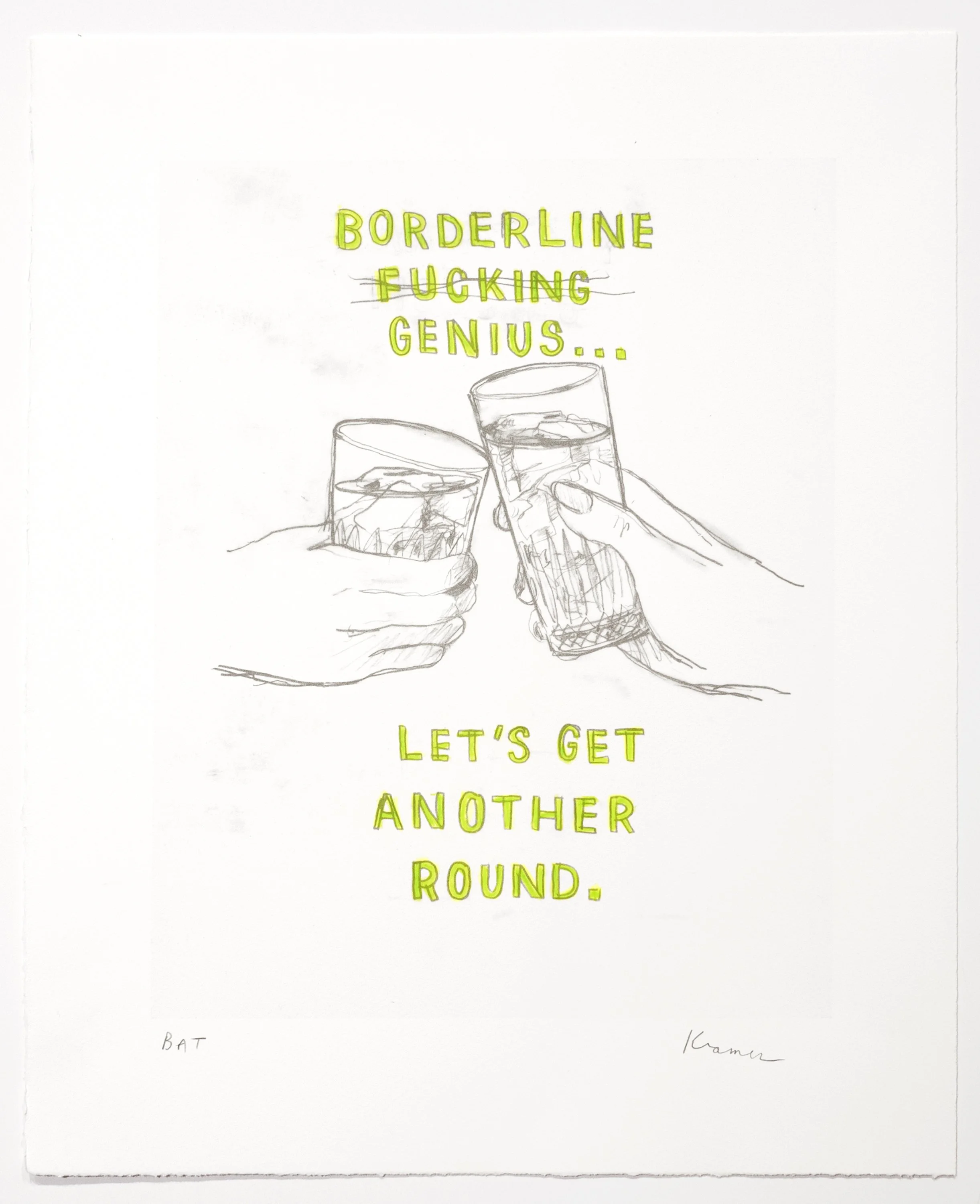 David Kramer, Borderline Genius, 2019, Lithograph with hand-coloring, Edition of 25